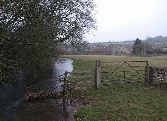 The River Churn is a tributary of the River Thames in central England. It rises at Seven Springs in Gloucestershire and flows south for approximately 37.3 km to meet the Thames at Cricklade in Wiltshire. Its length from its source to the confluence with the Thames is greater than that of the Thames from Thames Head, though the Churn is regarded as a tributary rather than the main river.