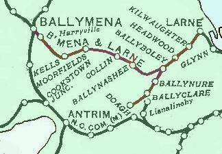 Ballyclare railway station was on the Ballymena and Larne Railway which ran from Ballymena to Larne in Northern Ireland.