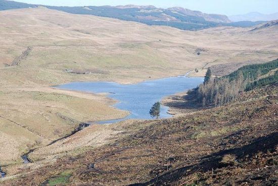 Feorlin is an impounding reservoir located 2 kilometres west of Minard. The loch is part of the Lochgair Hydroelectric Scheme. The rockfill dam is 4.19 metres high and was completed in 1964. When not diverted for hydroelectric purposes, the loch feeds a tributary of the River Add.
