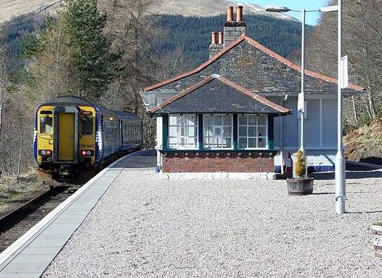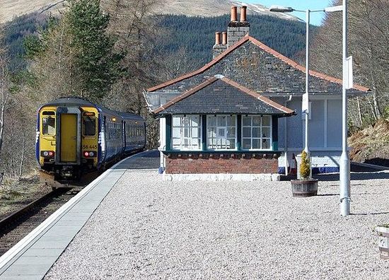 Upper Tyndrum railway station is one of two railway stations serving the small village of Tyndrum in Scotland. It is on the Fort William route of the scenic West Highland Line, between Crianlarich and Bridge of Orchy, sited 41 miles 25 chains from Craigendoran Junction, near Helensburgh. Services are operated by ScotRail - who manage the station - and Caledonian Sleeper.