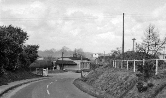 Bordon was a railway station on the Bordon Light Railway which served the English village of Bordon and its nearby Army Camp. The station building was constructed of corrugated iron on steel framing and stood on a short brick wall. Extra traffic during the First World War led to the extension of the station and the addition of a wooden canopy on its platform side. The station also had a small engine shed which was used in the line's early days for overnight stabling of engines. The shed was later to be damaged by an engine running through its rear, and it was left afterwards to become derelict. Eleven railway cottages were constructed by the London and South Western Railway near the station to accommodate staff: all were either semi-detached or terraced except no. 8 which was the stationmaster's residence. A small wooden signalbox located at the approach of the station completed the layout.