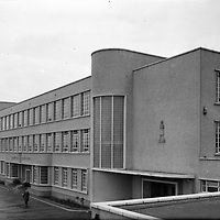 The school was designed by James Stewart Johnston in the mid-1930s, but building work was delayed until after World War II and construction started in 1949. The school was originally to be called Pilton Intermediate School. From its opening in 1948 until 1965 it was a junior secondary school, meaning pupils left at the end of their third academic year. If they wished to sit O-grade examinations they had to move on to another school. The 1965/66 academic year saw the school attain senior secondary status, thereby allowing pupils to remain into fourth year to sit O-grade exams. The school subsequently expanded the academic syllabus to offer Higher examinations. The school colours were red and gold and the badge was a golden dolphin on a red background.