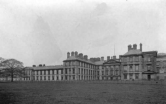 Hamilton Palace was a country house in Hamilton, South Lanarkshire, Scotland. The former seat of the Dukes of Hamilton, it dated from the 14th century and was subsequently much enlarged in the 17th and 19th centuries. Widely acknowledged as having been one of the grandest houses in the British Isles, the palace was situated at the centre of the extensive Low Parks , with the Great Avenue, a north–south tree-lined avenue over three miles in length, as its axis. The Low Parks also contained the Hamilton Mausoleum designed by David Hamilton and the 11th-century Netherton Cross, while the High Parks contain Chatelherault Hunting Lodge designed by William Adam. Hamilton Palace was demolished between 1921 and 1926 after coal works beneath the house were discovered to threaten its structural integrity.