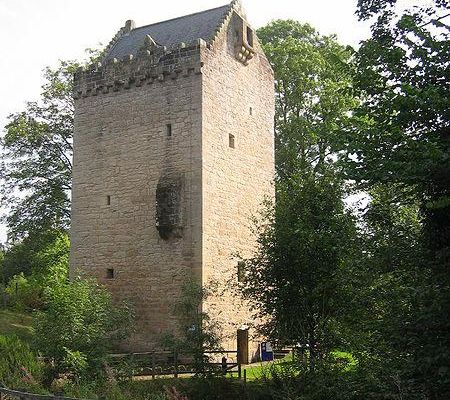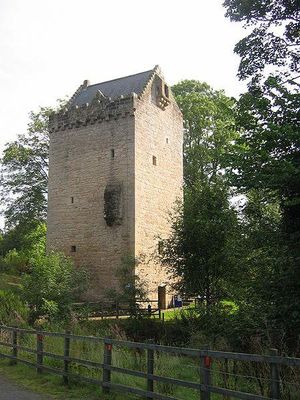 The Tower of Hallbar, also known as Hallbar Tower and Braidwood Castle, is a 16th-century tower house, located to the west of the River Clyde in South Lanarkshire, Scotland. The tower is situated above the Braidwood Burn, 3.5 km south-west of Carluke, and 1.5 km east of Crossford. It has been restored and is let out as holiday accommodation.