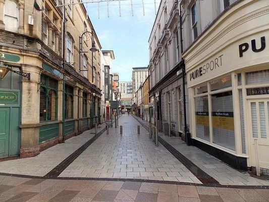 Caroline Street is a pedestrianised street running east/west in the lower part of Cardiff city centre, located between The Hayes and St. Mary's Street. It is known locally as Chippy Lane due to the density of fast food shops along the street.