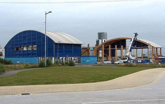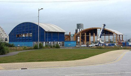 The Cardiff Arena, also known as Cardiff Bay Ice Arena and also known by ice hockey fans as the Big Blue Tent, was a temporary ice rink in Cardiff Bay, Cardiff, Wales. It had a capacity of 2,500 for ice hockey and was home to the Cardiff Devils after leaving the Wales National Ice Rink which was being demolished to make way for a John Lewis store.