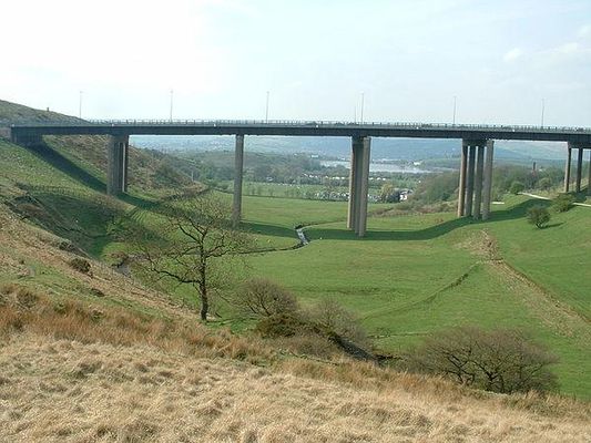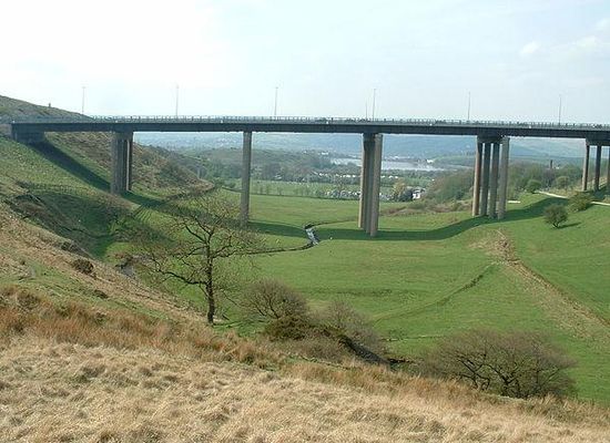 The Rakewood Viaduct carries the M62 motorway over Rakewood Valley and Longden End Brook between junctions 21 and 22 at Littleborough, Greater Manchester, England.