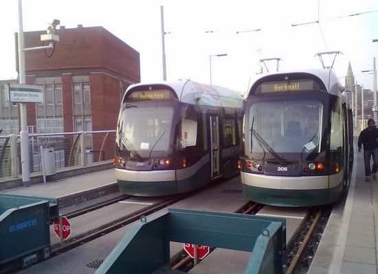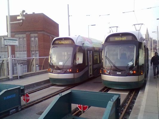 Nottingham Station (previously Station Street) is a tram stop on the Nottingham Express Transit network, opened in March 2004. The stop is the southern terminus for both routes of the tram line. It is located on Station Street, directly north of Nottingham railway station and partially over the Nottingham Canal. A footbridge between the railway station and the tram stop provides for a direct interchange between NET's service and National Rail services.