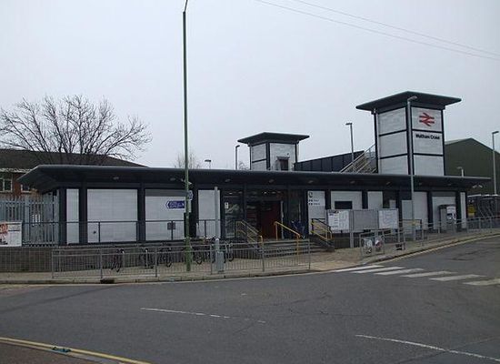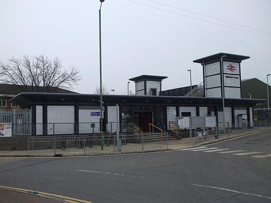 Waltham Cross railway station is on the West Anglia Main Line, serving the suburban town of Waltham Cross in Hertfordshire, and the neighbouring Waltham Abbey in Essex, England. It is 12 miles 63 chains down the line from London Liverpool Street and is situated between Enfield Lock and Cheshunt. Its three-letter station code is WLC and it is in Travelcard zone 7.