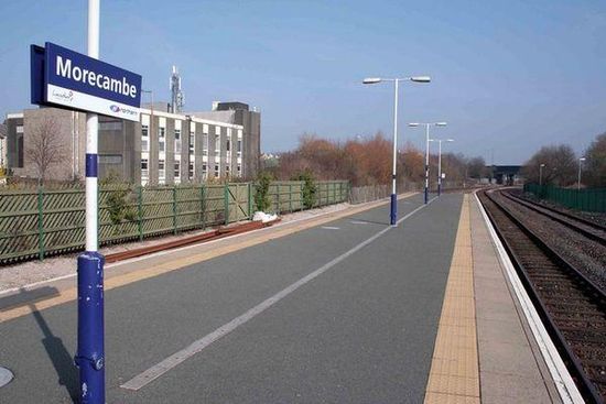 Morecambe is a railway station on the Morecambe Branch Line, which runs between Lancaster and Heysham Port. The station, situated 4 miles west of Lancaster, serves the town of Morecambe in Lancashire. It is owned by Network Rail and managed by Northern Trains.