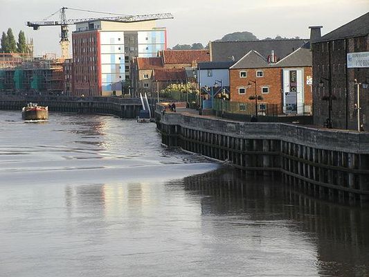 The Aegir occurs when a high spring tide meets the downstream flow of the river. The funnel shape of the river mouth exaggerates this effect, causing a large wave to travel upstream as far as Gainsborough, Lincolnshire, and sometimes beyond. The Aegir cannot travel much beyond Gainsborough as the shape of the river reduces the Aegir to little more than a ripple, and weirs north of Newark-on-Trent, Nottinghamshire stop its path completely.