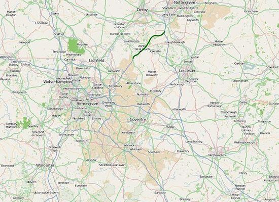 The A42 is a major trunk road in the East Midlands region of the United Kingdom. It links junction 23A of the M1 motorway to junction 11 of the M42 motorway. The A42 is in effect a continuation of the M42, and its junctions are numbered accordingly.