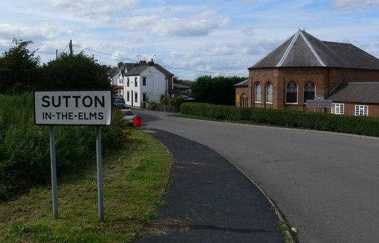 Sutton in the Elms is a settlement in the northwest of Broughton Astley , Leicestershire. Its name is sometimes abbreviated to Sutton Elms. Sutton is one of the three settlements mentioned in Domesday that now comprise Broughton Astley: namely Broctone, Sutone and Torp.