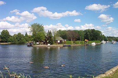 Fry's Island, also known as De Montfort Island, is an island in the River Thames in England. The island is on the reach above Caversham Lock at Reading, Berkshire. The centre of Reading is to the south and the suburb of Caversham to the immediate north.