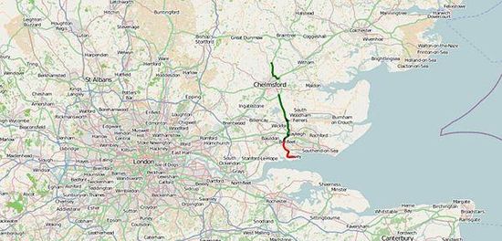 The A130 is a major road in England linking Little Waltham, near Chelmsford, the county town of Essex, with Canvey Island in the south of that county. It is a primary route for most of its length, only losing that status south of the A13 junction at Sadlers Farm roundabout as it nears its terminus on Canvey Island. It was originally a much longer cross-country route .