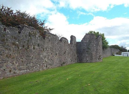 The Port Wall in Chepstow, Monmouthshire, Wales, is a late thirteenth century stone wall, which was constructed for the twin purposes of defence and tax collection by permitting users of the town's market only one point of access through the wall at the Town Gate. The wall originally formed a semi-circle extending for some 1,100 metres , roughly southwards from Chepstow Castle to the River Wye. It enclosed an area of 53 hectares , including the entire town and port as it existed at that time. Substantial sections of the wall remain intact, and both the Port Wall and the Town Gate are Grade I listed buildings. The Port Wall is a Scheduled monument.