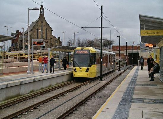 Oldham King Street is a tram stop on the Oldham and Rochdale Line of Greater Manchester's light-rail Metrolink system and is located opposite Oldham Sixth Form College, at the junction of King Street and Union Street in Oldham, England. The stop opened on 27 January 2014. It is built on the site of the former King Street Baptist Church, which occupied the site from 1862 to 2005. The site was acquired by Compulsory Purchase Order in 2005, and the Church was rebuilt nearby in Chaucer Street with the compensation it received. A plaque, acknowledging this, on a stone pillar from the original church stands on the corner of the site.
