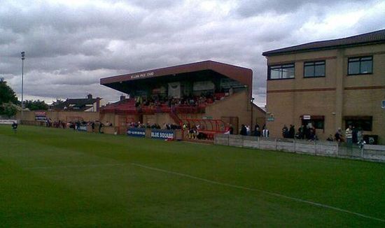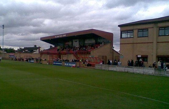 Butcher's Arms Ground is a multi-use stadium in Droylsden, Tameside, Greater Manchester, England. It is currently used mostly for football matches and is the home ground of Droylsden F.C. The stadium has a capacity of 3,000 people both seated and standing and is nicknamed "The Slaughterhouse" or "Abattoir" by fans. The Butchers reference is celebrated at a designated home game once a year, when the stadium floor is sprinkled with saw dust and fans are invited to wear white overalls and hairnets. During Droylsden's recent F.A. Cup tie against Leyton Orient, broadcast live on ESPN, two fans invaded the pitch at the end of the match dressed as butchers. It has partial or full cover on three sides of the pitch, terracing on four sides and seating along the centre of one side, plus a public house.