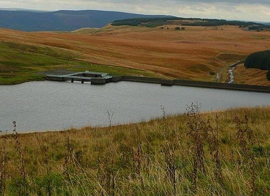 Lluest-wen Reservoir is a reservoir at the top of the Rhondda Fach Valley , in the borough of Rhondda Cynon Taf, South Wales. Parts of it fall within the communities of Rhigos, Aberdare and Treherbert. A recreational walking route, the Coed Morgannwg Way, and route 47 of the National Cycle Network run northeast and southwest of it respectively.