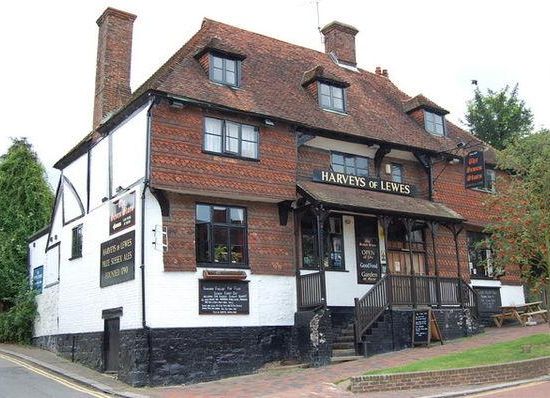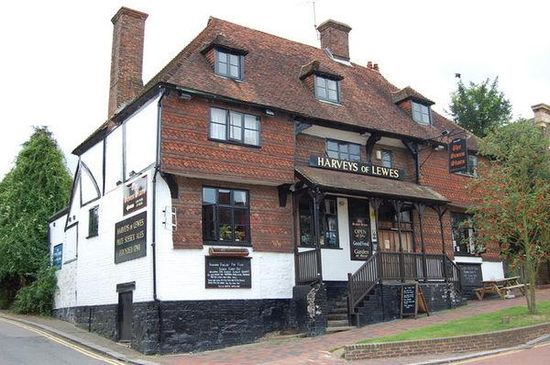 Built in about 1400 as a Wealden hall house in traditional Wealden timber frame, the building is Grade II* Listed. It was altered in the 16th century and re-faced in the 19th century. It has a recessed centre, with curved timber brackets supporting the eaves. The first floor oversails on brackets, and has a Crown-post-supported roof. Owned by Harveys, a brewery in Lewes, since February 2002, the pub has existed in its current form for at least 300 years.
