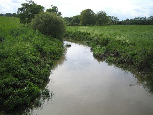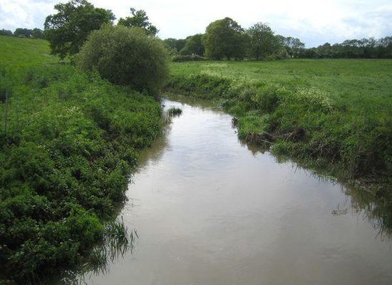 The River Eden in West Kent is a tributary of the River Medway. It travels through the Weald of Kent from the border with Surrey, rising from the source in Titsey parish, Surrey, grid reference TQ 420 551, about 350 metres north of Clacket Lane motorway services, and flowing eastward through the Wealden clay to join the River Medway near Penshurst, Kent, grid reference TQ 537 434. The section from its source to where the Gibbs Brook joins it is also known as the Broadmead Water. Its name is a back formation deriving from Edenbridge, the main town through which it flows, and which was originally called in the Old English language "Eadhelmsbrigge" .