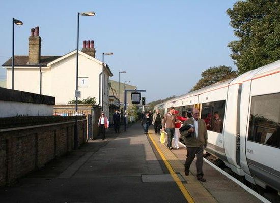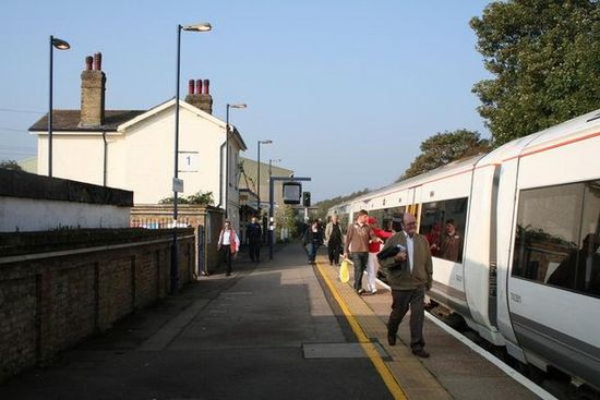 Farningham Road railway station is on the Chatham Main Line in England, serving the villages of Farningham, Sutton-at-Hone, Horton Kirby and South Darenth, Kent. It is 20 miles 41 chains down the line from London Victoria and is situated between Swanley and Longfield.