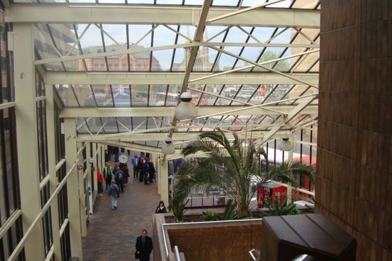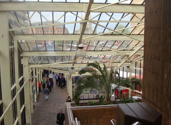 Queensgate bus station serves the city of Peterborough, Cambridgeshire, England. The bus station is located adjacent to Queensgate shopping centre and is only a short walk from Peterborough railway station and the city centre. A footbridge links the bus station with the rail station.