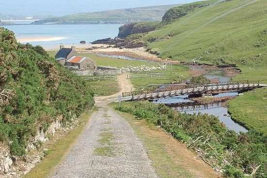 The cape is separated from the rest of the mainland by the Kyle of Durness and consists of 107 square miles of moorland wilderness known as the Parph. The first road was built in 1828 by the lighthouse commission across the Parph/Durness. This road connects a passenger ferry that crosses the Kyle of Durness with the buildings on the peninsula.