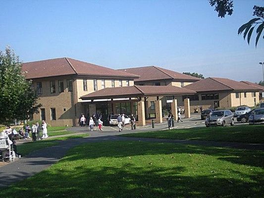 The hospital, which is laid out using the nucleus design concept with a standard cruciform floor plan template with facilities on each side of a hospital 'street', was completed in 1989.