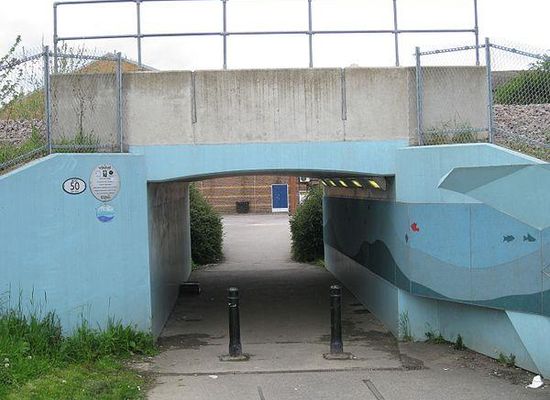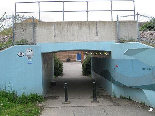 Tickle Cock Bridge is a pedestrian underpass in Castleford, England, under a railway line originally built by the York and North Midland Railway between York and Normanton. Built in 1890, the thoroughfare now connects the town's main residential area with the Carlton Lanes Shopping Centre, and is used by 50,000 pedestrians each week. The original Victorian structure, described by the shopping centre's manager as "small, narrow, very low and gloomy" and "frightening to walk through", was replaced in 2008 as part of an urban regeneration scheme.