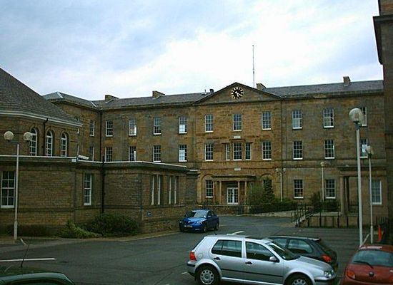 Founding an infirmary for Sheffield was suggested in an anonymous letter written 1789 and following a public meeting in April 1792, public subscriptions amounting to £15,000 were collected and a site on Upperthorpe Meadows purchased. Designed by John Rawsthorne, with many unique features, the first stone of the new building was laid 4 September 1793 and the hospital opened on 4 October 1797. The main entrance featured two niched statues of 'Hope' and 'Charity' , by renowned Sheffield born sculptor Sir Francis Leggatt Chantrey. A biblical inscription above the door read; I was sick and ye visited me, verily in as much as ye have done it unto one of the least of my brethren, ye have done it unto me.