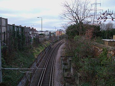 Due to limited track space in the cutting northwest of the station towards Belgrave Walk tram stop, the tracks are interlaced for a short distance with one rail of the southeast bound track between the two rails of the northwest bound track. East of the station there used to be single track to Mitcham Junction Station.