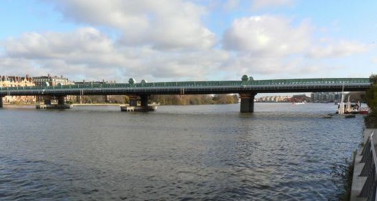 Fulham Railway Bridge crosses the River Thames in London. It is very close to Putney Bridge, and carries the London Underground District line between Putney Bridge station on the North, and East Putney station on the South. Fulham Railway Bridge can also be crossed on foot, on the downstream (east) side.