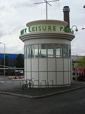 The retail park is divided into two areas: the bottom half is a long but large modern building which houses the entertainment and leisure area and a small parking lot. The upper half includes larger retail units with a large car park, B&Q and IKEA; both have their own car-parks for customers as well as McDonald's and Burger King.