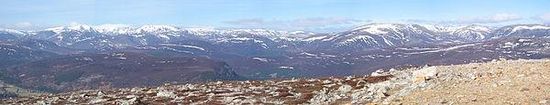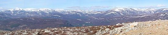 The hill reaches a height of 859 metres and qualifies as a Corbett and a Marilyn, although with a topographic prominence of 155 metres, it only just meets the prominence criterion for these categories. Morrone very much belongs to the village of Braemar from which it is usually climbed, and with a starting elevation of 330 metres, it is an easy ascent and a unique one, being the only significant mountain climb in Scotland to start from the centre of a village. Morrone is used for the Braemar Gathering hill race every September, and is a popular venue for paragliding and hang-gliding. The hill is occasionally referred to as Morven and it is given both names on Ordnance Survey maps, although Hamish Brown says I’ve never heard it called Morven. In point of fact, the pronunciation of Morrone does not correspond closely with the pronunciation of Mór Shròn, and the derivation of Morrone is a complex question. Watson and Allan come down on the side of Mór Bheinn. Morrone is not to be confused with Morven, the highest point in Caithness, or with the local Morven, a mere 29 km to the northeast.