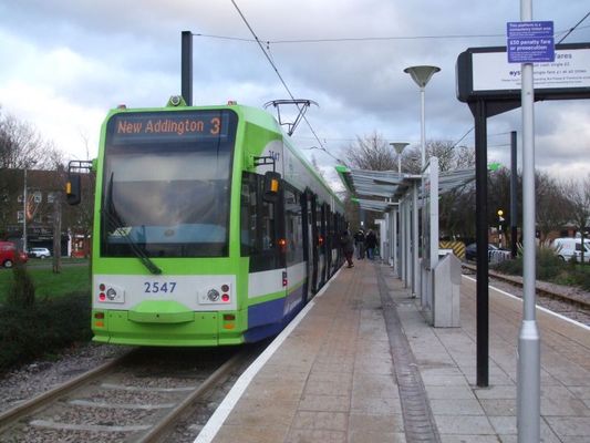 New Addington is a terminal tram stop serving New Addington, in the London Borough of Croydon, in the southern suburbs of London. The tram stop is served by Tramlink route 3, which connects New Addington with Wimbledon via central Croydon.