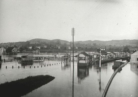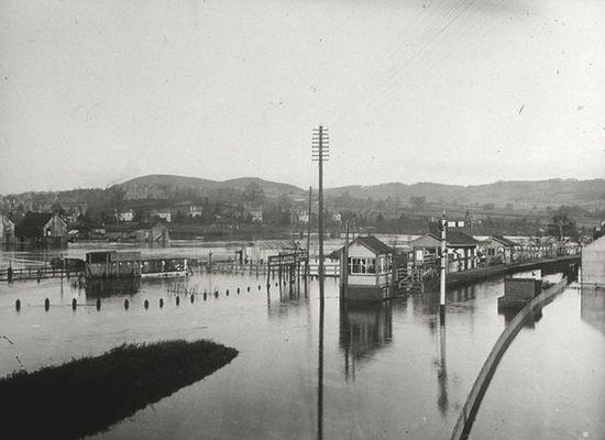 Monmouth Mayhill railway station is a disused railway station on the Ross and Monmouth Railway which was opened in 1873 and closed in 1959. It was one of two stations that served the town of Monmouth, Wales and was situated on the opposite bank of the river River Wye from Monmouth. It was the initial terminus of the line, but the line was extended across the River Wye to the junction station of Monmouth Troy in 1874 with the construction of the Duke of Beaufort Bridge.