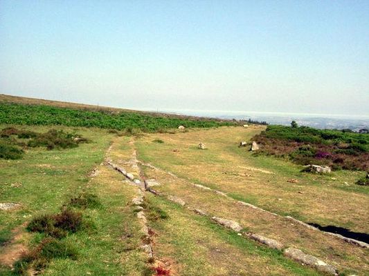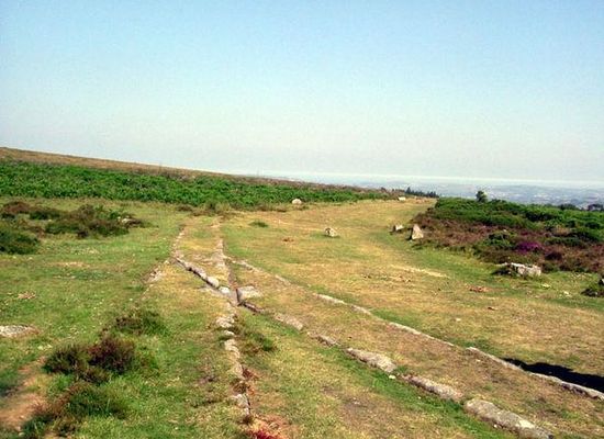 The Haytor Granite Tramway was a tramway built to convey granite from Haytor Down, Dartmoor, Devon to the Stover Canal. It was very unusual in that the track was formed of granite sections, shaped to guide the wheels of horse-drawn wagons.