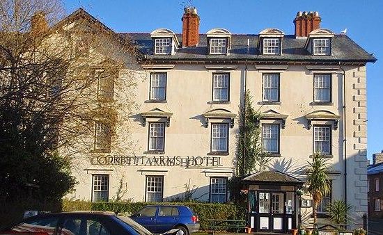 The hotel was the principal hotel in Tywn and is first recorded in 1833. It was part of the estate of John Corbett of Ynysmaengwyn, who more than doubled the building in size and added a second 'T' to its name, originally The Corbet Arms.