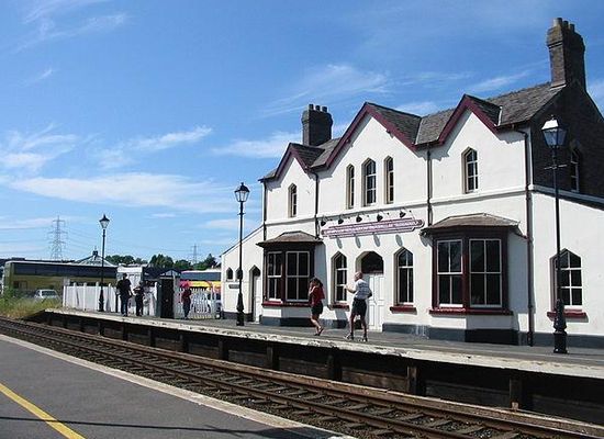 Opened in 1848 it was initially the terminus of the line from Holyhead before the opening of the Britannia Bridge to the mainland in 1850. It suffered a catastrophic fire on 13 November 1865 and had to be completely re-constructed. It was closed in 1966 but reopened in 1970 due to the fire on the Britannia Bridge again as the terminus for trains from Holyhead, with a single wooden platform. It was again closed in 1972 and subsequently reopened again 1973 with both wooden platforms , which was refurbished in 2017 and the signal box remain from the original configuration, but converted into a gate keeper's box, meaning no junctions or signals are controlled from there, except for gate locking. However, a turntable, sidings and goods yard have disappeared, the latter two under a car park.