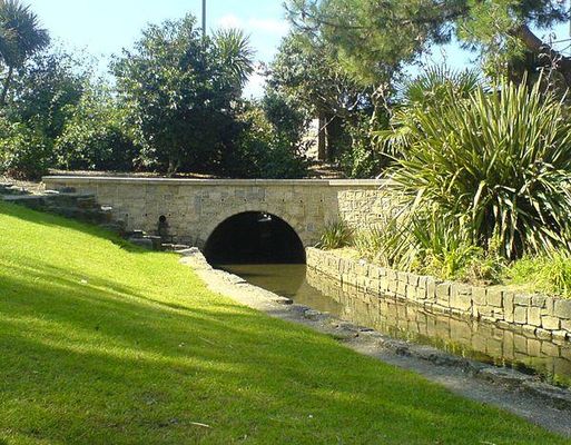 The River Bourne is a small river in Dorset, England. It flows into the English Channel at Bournemouth, taking its name simply from Middle English bourn or burn, a small stream, and giving it to the town at its mouth.