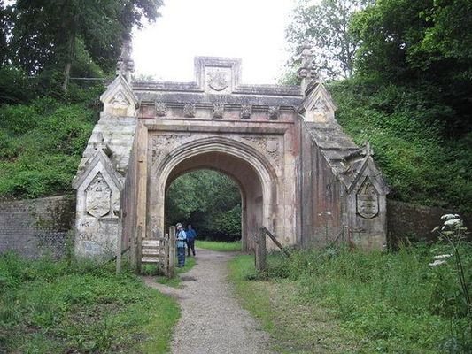 The Lady Wimborne Bridge is a former railway bridge built in 1853, and now a listed building. Its highly ornate design reflects the power of landowners over British railway companies in the mid-nineteenth century. Built shortly after the railway came to the town of Wimborne in Dorset, England, it is now a Grade II listed structure.