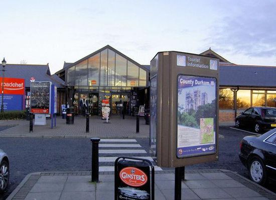Durham Motorway Services are at junction 61 on the A1 , six miles from Durham City between the villages of Bowburn and Coxhoe in County Durham, England. Opened in 1994 by David Bellamy, the site operates high street brands such as McDonald's, Costa Coffee, WHSmith and on site hotel Days Inn. In 2019, the site opened a McDonald's Drive Thru, the first on the UK motorway network and created an extra 20 jobs in team members, management and customer service.