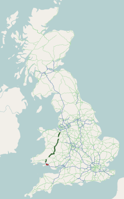 The A483, officially described as the Swansea to Manchester Trunk Road, although now ending in Chester, is a major road in the United Kingdom. It runs from Swansea in Wales to Chester in England via Llandovery, Llandrindod Wells, Oswestry and Wrexham, a distance of around 153 miles .