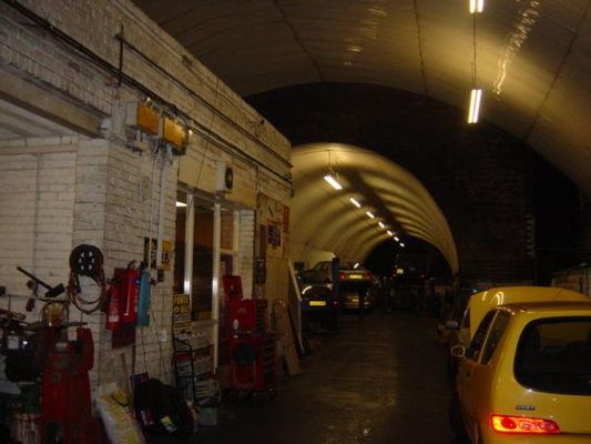 Dingle railway station is a disused underground railway station located on the Liverpool Overhead Railway , at the south end of Park Road, Dingle, Liverpool. It was the only below ground station on the line. Trains accessed the station via a half-mile tunnel, bored from the cliff face at Herculaneum Dock to Park Road. It is the last remaining part of the Overhead railway, with the surface entrance still standing. The former platform and track area were in use as a garage called Roscoe Engineering until 2015.