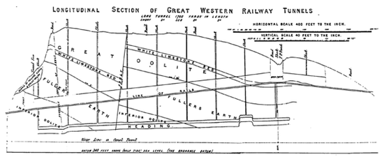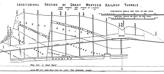 The Sapperton Railway Tunnel is a railway tunnel near Sapperton, Gloucestershire in the United Kingdom. It carries the Golden Valley Line from Stroud to Swindon through the Cotswold escarpment. It was begun by the Cheltenham and Great Western Union railway in 1839 and taken over by the Great Western Railway in 1843, being completed in 1845. There are actually two tunnels, the main one at 1 mi 104 yd in length, and separated by a short gap, a second at 353 yd .