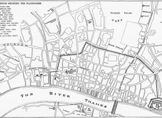 According to contemporary chronicler Edmund Howes, "a new faire Play-house" was erected in 1629, just to the west of the medieval walls of the City of London, between Fleet Street and the River Thames, in a building converted from a barn or granary in the grounds of Dorset House. An enclosed "private" venue like the Blackfriars Theatre, it was a successor to the earlier Whitefriars Theatre and the short-lived Porter's Hall Theatre, and catered to an upscale and elite audience—in contrast to the open-air theatres like the Globe, Fortune, and Red Bull theatres that served a mass audience .
