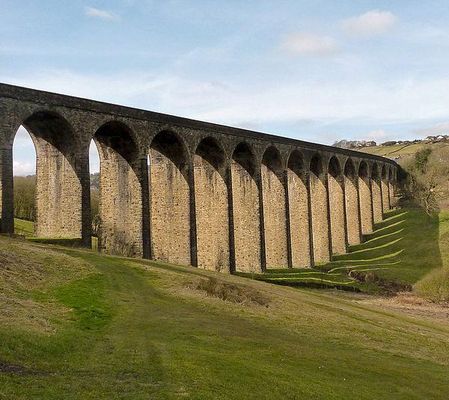 The viaduct was part of the GNR's Queensbury Lines running between Queensbury and Keighley. It stopped carrying passengers in 1955 but remained open to goods until the 1960s. At that time, the railway closed and the tracks were pulled up. The viaduct is now a Grade II listed building.