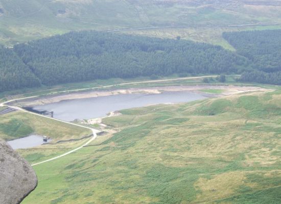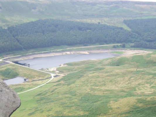 Yeoman Hey Reservoir is a reservoir in the English Peak District. On its margin is a commemorative stone laid by the King of Tonga in 1981. The reservoir is within the boundaries of Greater Manchester but was formerly in the West Riding of Yorkshire. It is one of three reservoirs in the same valley: above it is Greenfield Reservoir, and adjacent to and below it is Dovestone Reservoir. The reservoirs lie to the south of the A635 road across Saddleworth Moor. To the west, below the reservoirs, is the village of Greenfield.
