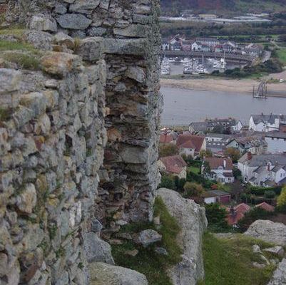 Deganwy Castle was an early stronghold of Gwynedd and lies in Deganwy at the mouth of the River Conwy in Conwy, north Wales. It lies at an elevation of 110 m on a volcanic plug.